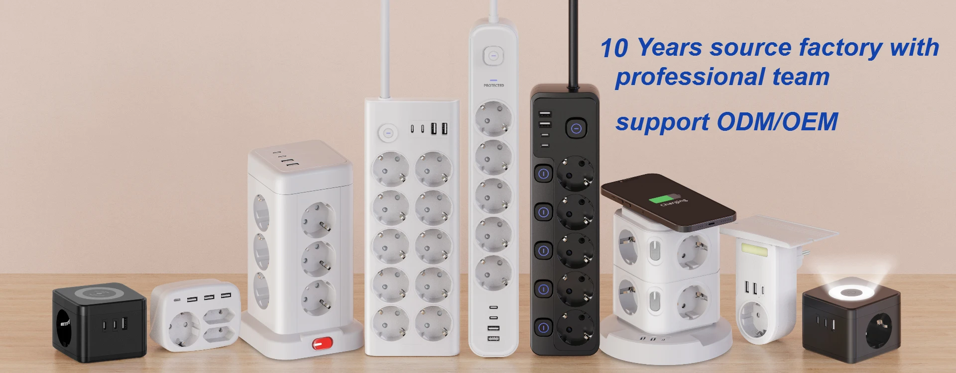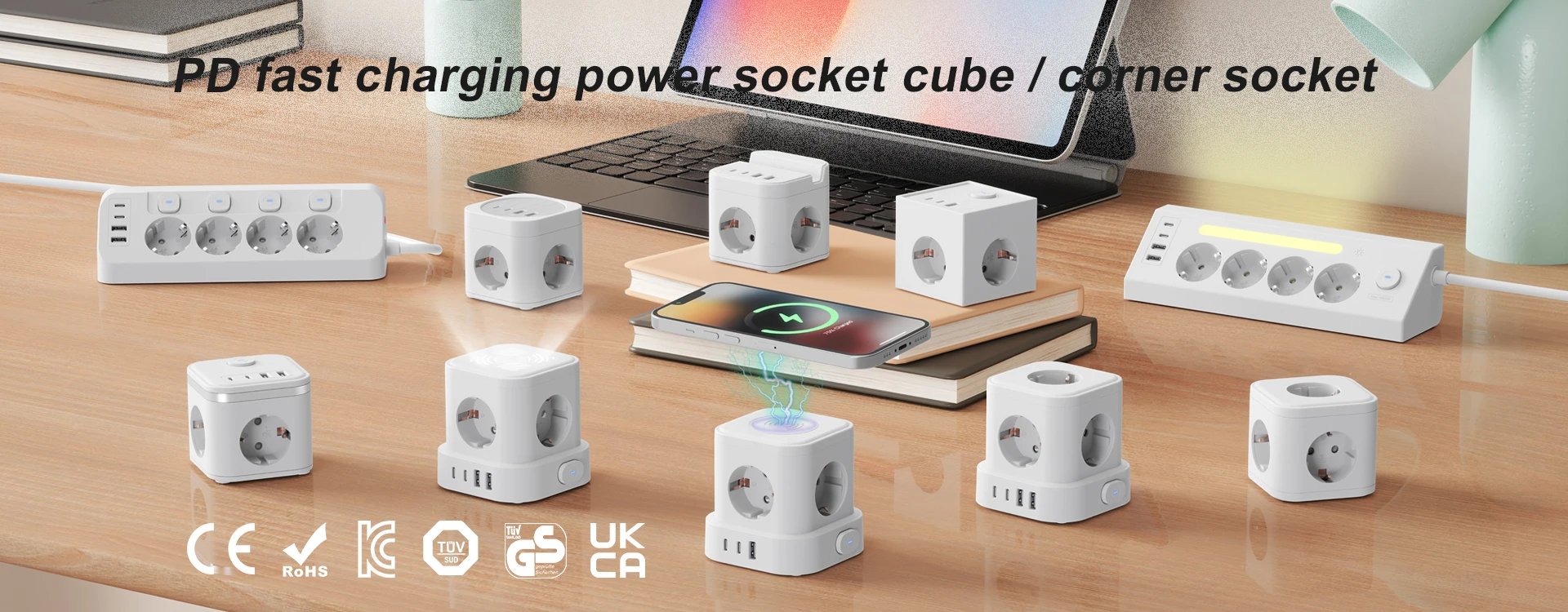 Cube Power EU Standard Adapter Tower 5 AC Outlets 4 USB Chargers Extension Socket 4 USB Output with Wireless Charger